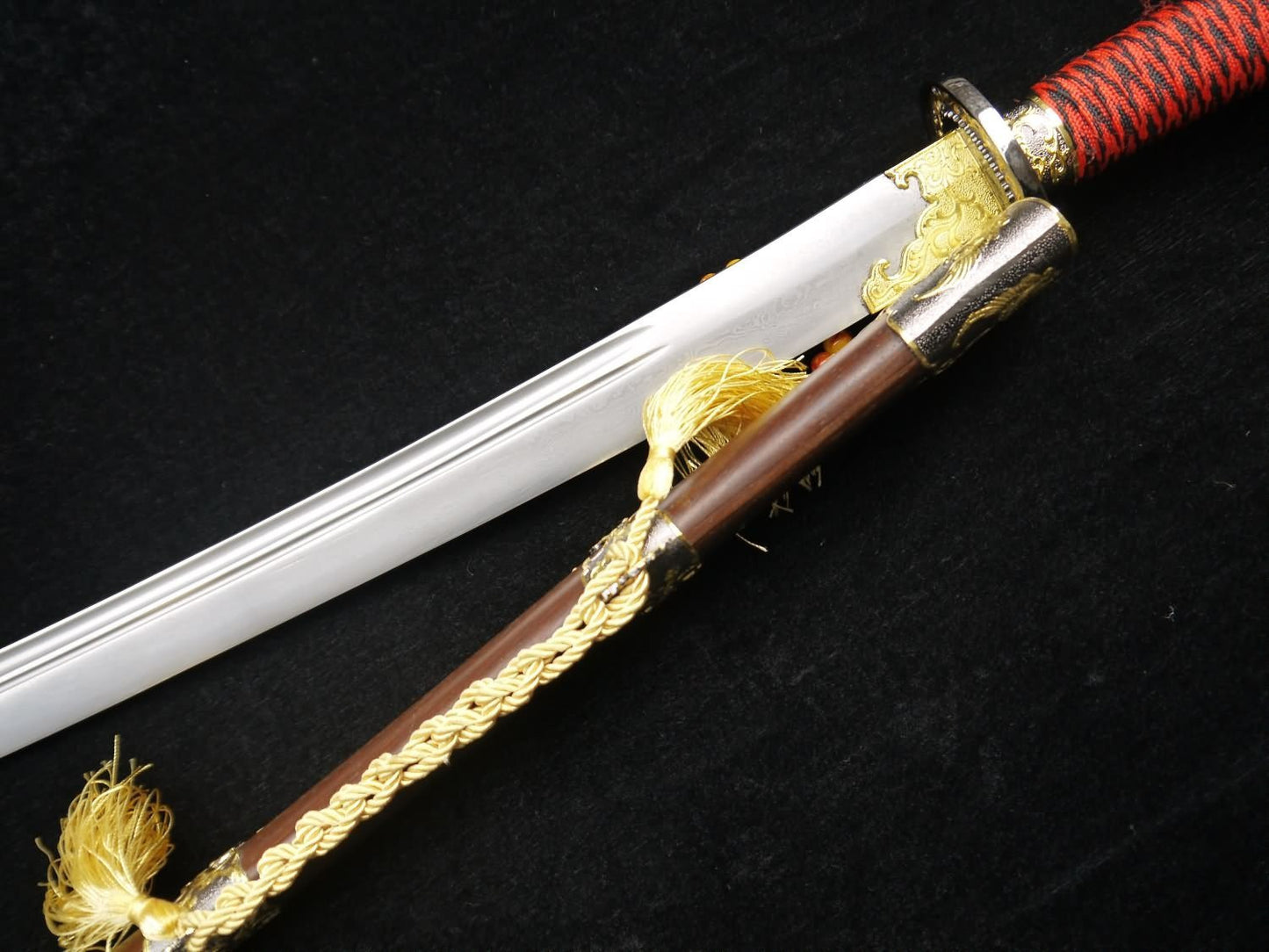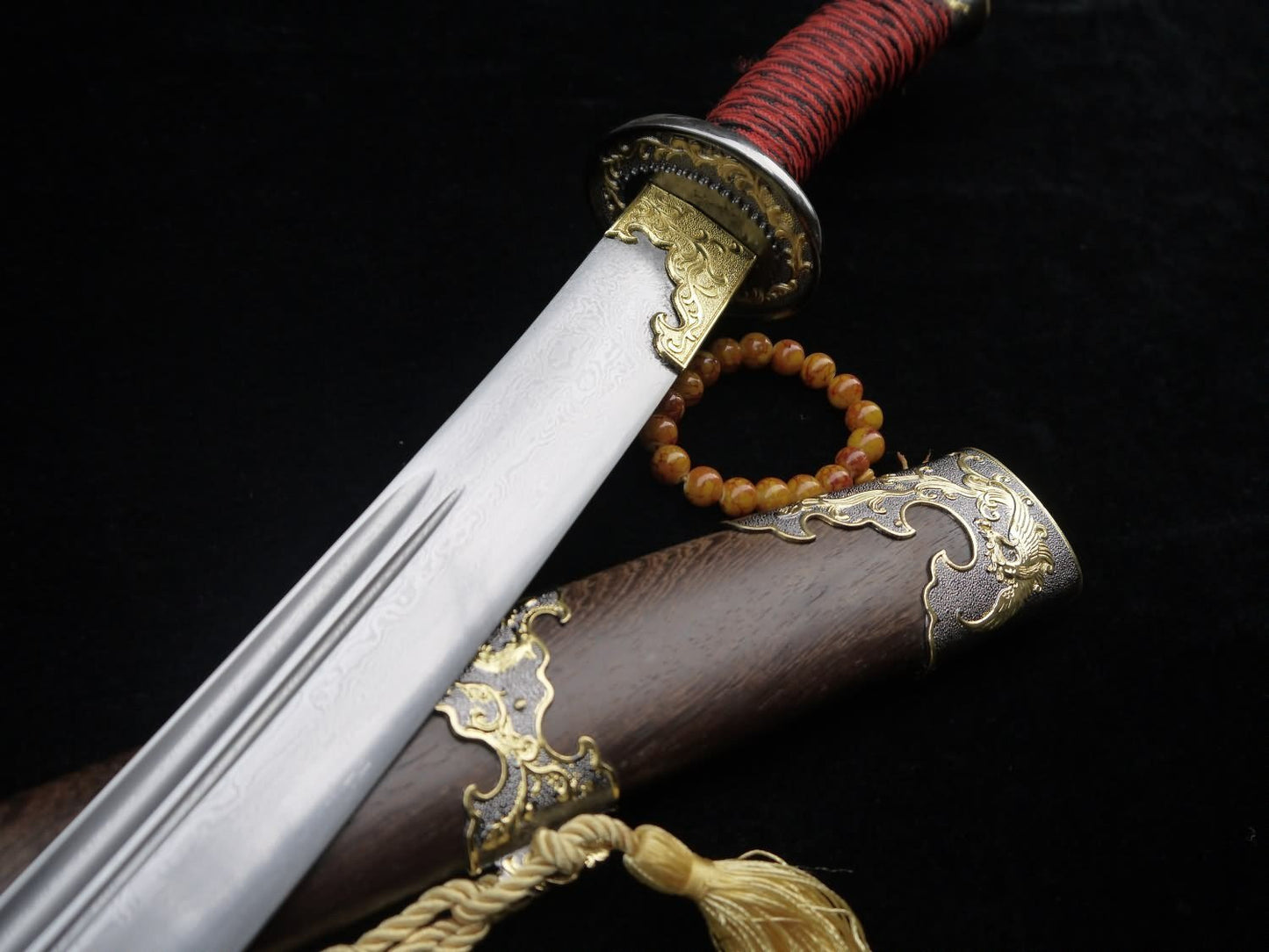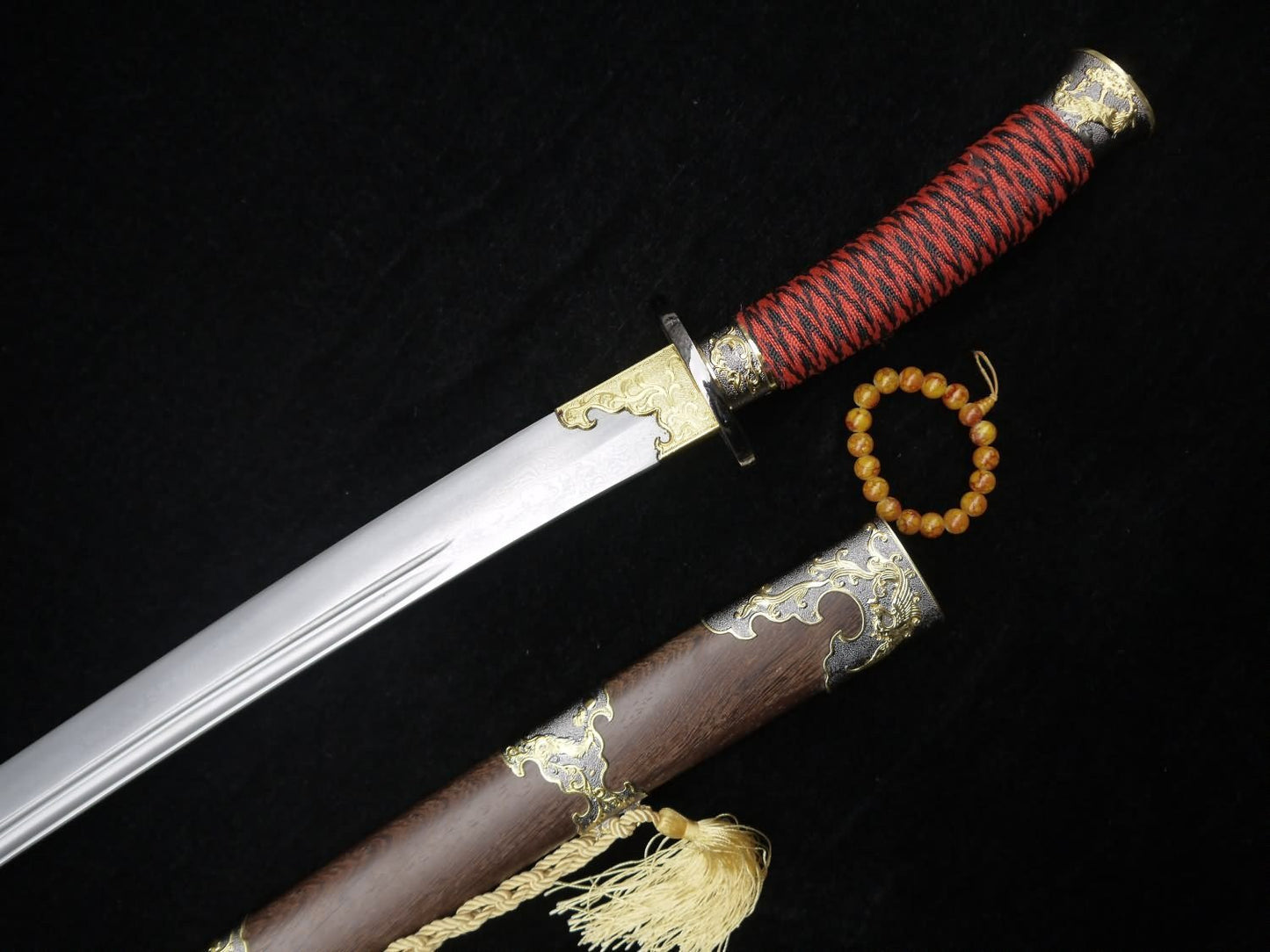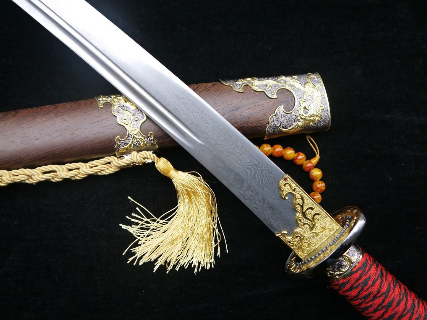 Sword generally consists of three components:blade,sheath and accessories.The main body, blade,is mostly iron,steel,copper.Sheath is made by wood. In order to avoid getting rusted,it should not be stored in damp place nor contact with sour, salty substances. Hand touch should also be avoided in case the surface got corroded by sweat.Oil shoul be applied on surface for maintainance for medium carbon steel,high carbon steel,pattern-welded steel(Damascus steel)material stainless steel blade.