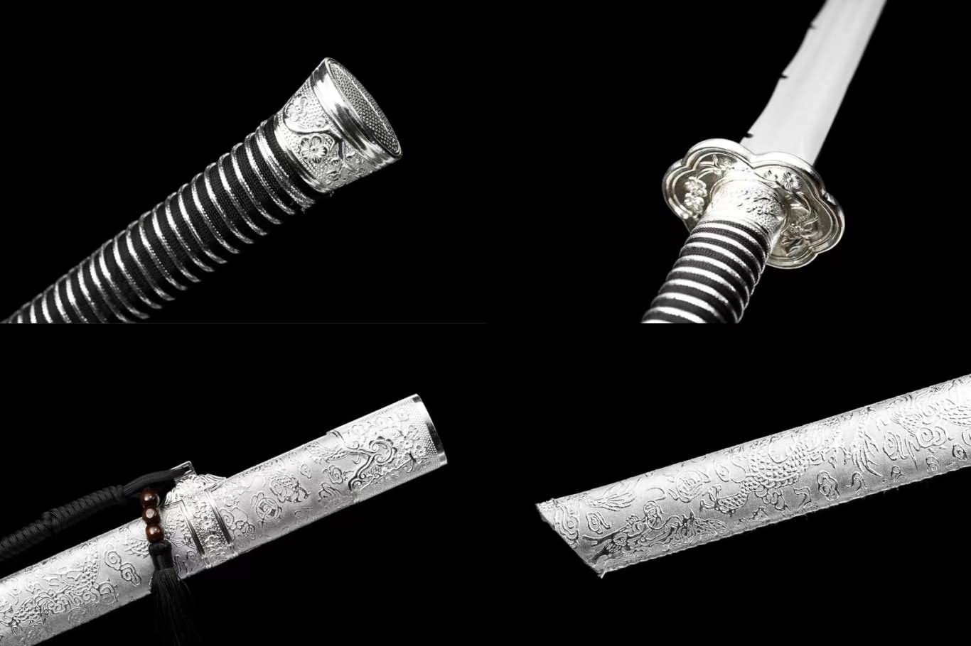 Sword generally consists of three components:blade,sheath and accessories.The main body, blade,is mostly iron,steel,copper.Sheath is made by wood. In order to avoid getting rusted,it should not be stored in damp place nor contact with sour, salty substances. Hand touch should also be avoided in case the surface got corroded by sweat.Oil shoul be applied on surface for maintainance for medium carbon steel,high carbon steel,pattern-welded steel(Damascus steel)material stainless steel blade.