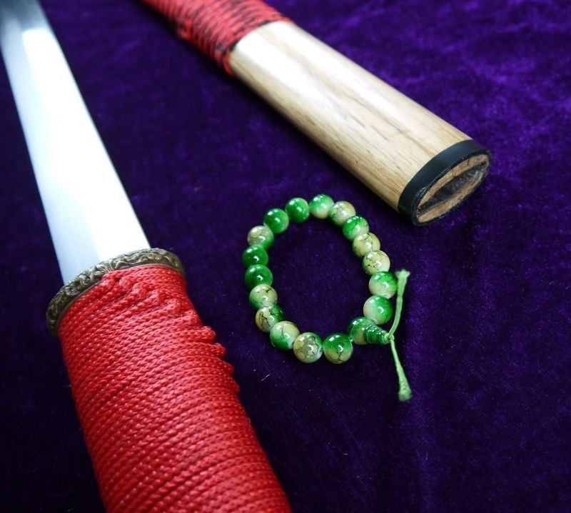 Sword generally consists of three components:blade,sheath and accessories.The main body, blade,is mostly iron,steel,copper.Sheath is made by wood. In order to avoid getting rusted,it should not be stored in damp place nor contact with sour, salty substances. Hand touch should also be avoided in case the surface got corroded by sweat.Oil shoul be applied on surface for maintainance for medium carbon steel,high carbon steel,pattern-welded steel(Damascus steel)material stainless steel blade.