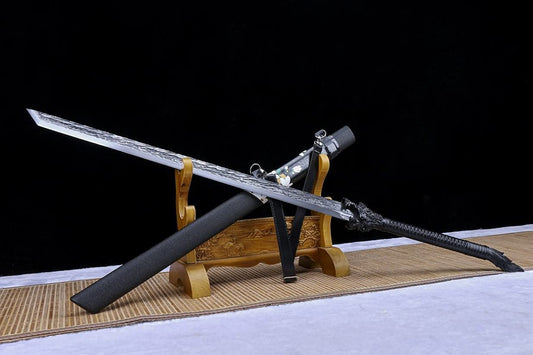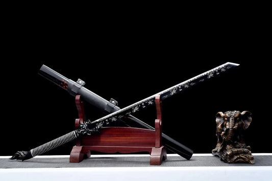 Upgrade Tang Dao Handmade Damascus Steel Blade Ebony Scabbard