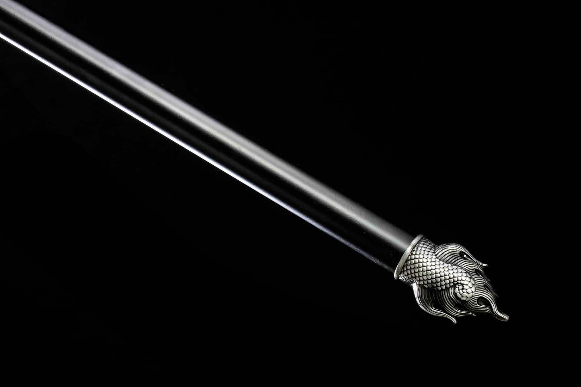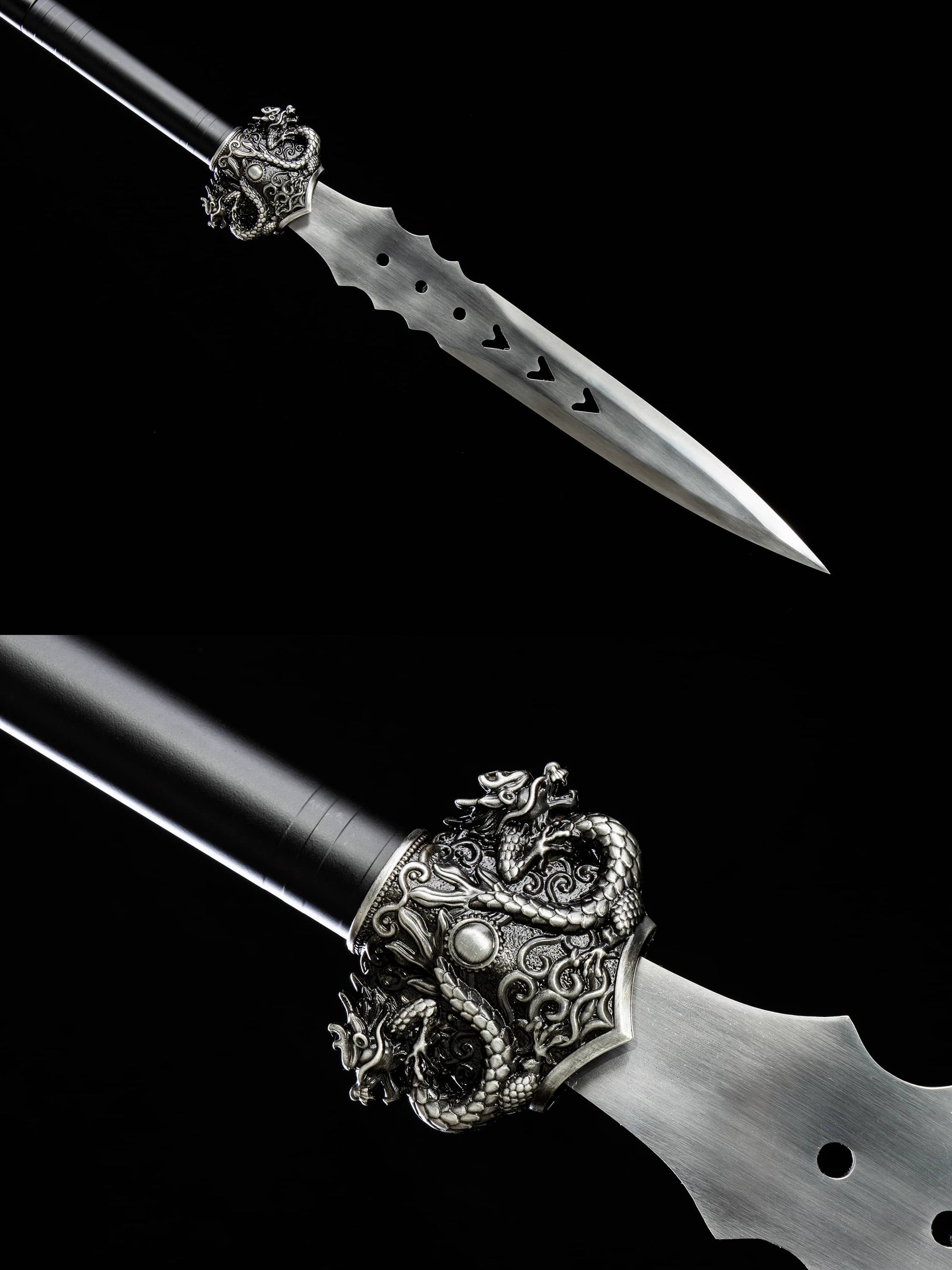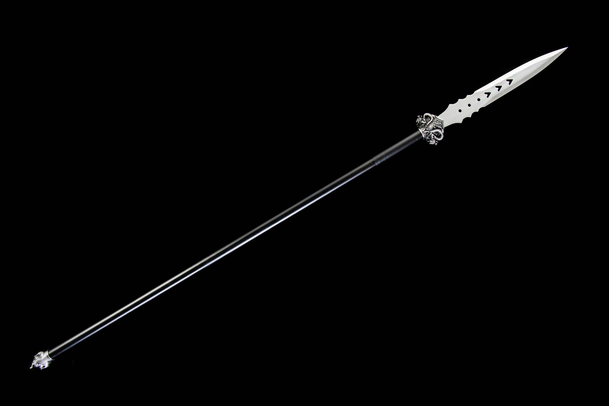 Elevate your wushu practice or collection with this striking 68.9" (175 cm) spear. The 16.1" (41 cm) blade, forged from high-performance manganese steel, delivers outstanding durability and sharpness. A six-section black lacquered iron shaft—three 6.3" (16 cm) and three 43.3" (110 cm) segments—allows for effortless transport and fast assembly. Each segment locks firmly with custom aluminum alloy fittings, ensuring rock-solid stability during advanced routines. Weighing just 5.0 lb (2.25 kg), this spear offers flawless balance for dynamic forms or showcase displays. Please allow for slight variances in dimensions—refer to the actual product for final measurements.