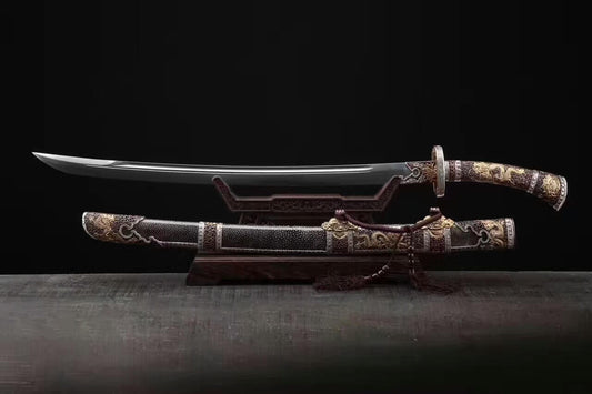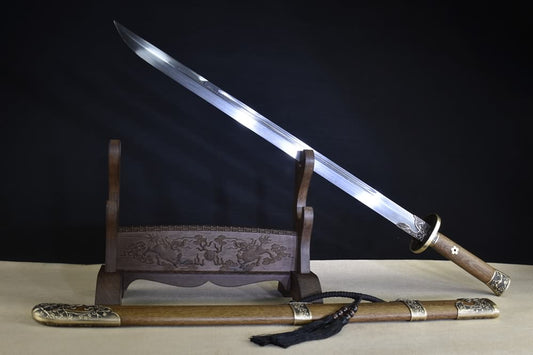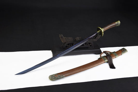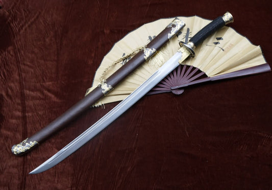 Qing sword,Hand Forged,Damascus steel blade,Redwood,Alloy
