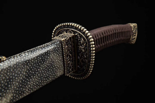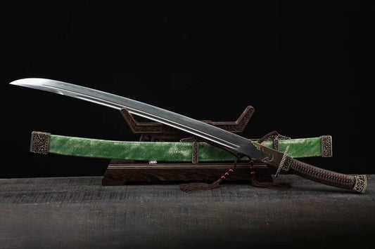 Qing Sword,Forged Damascus Steel Blade,Brass Fittings