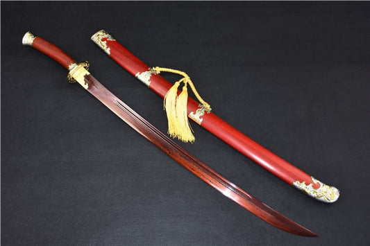 Qing dao sword,Damascus steel red blade,Redwood scabbard