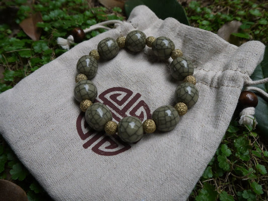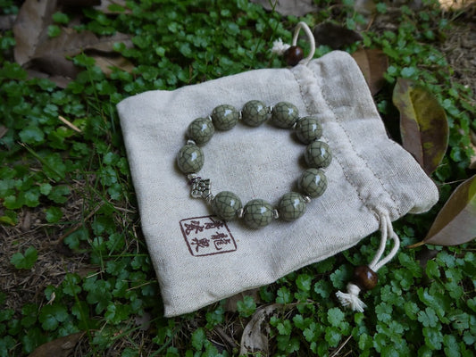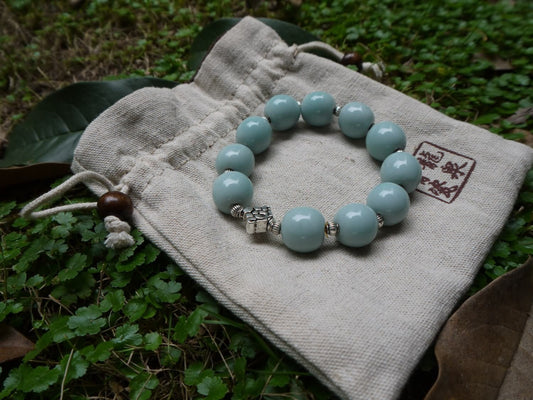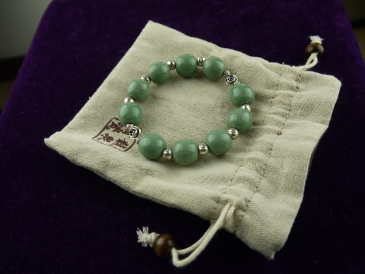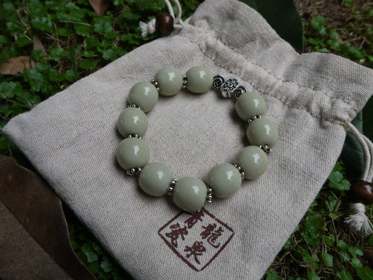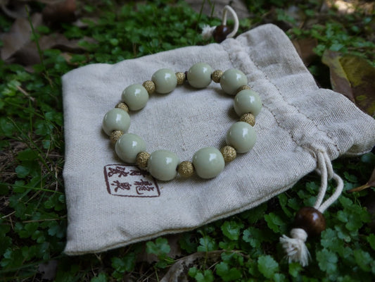 Porcelain Bracelet/Celadon ge ware Celadon/World Intangible Cultural Heritage/Three celadon beads