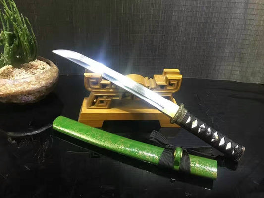 Wakizashi/Samurai/High carbon steel blade/Green paint Scabbard/Alloy/Length 20"