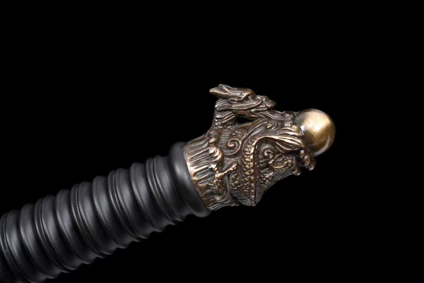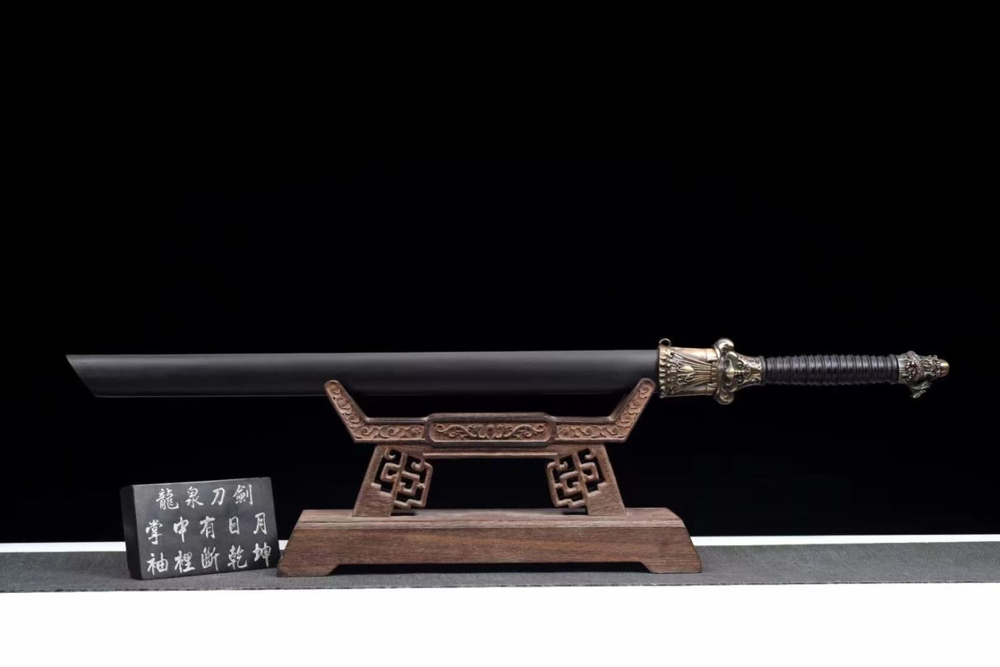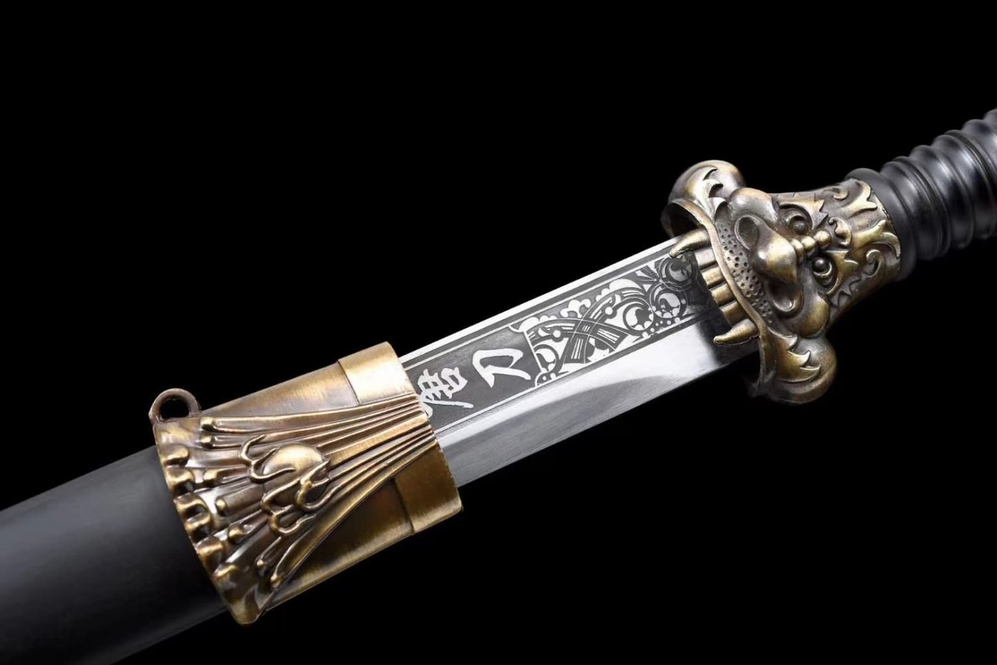 Dragon Tang dao with Forged High Carbon Steel Etched Blade-Black Wood Scabbard