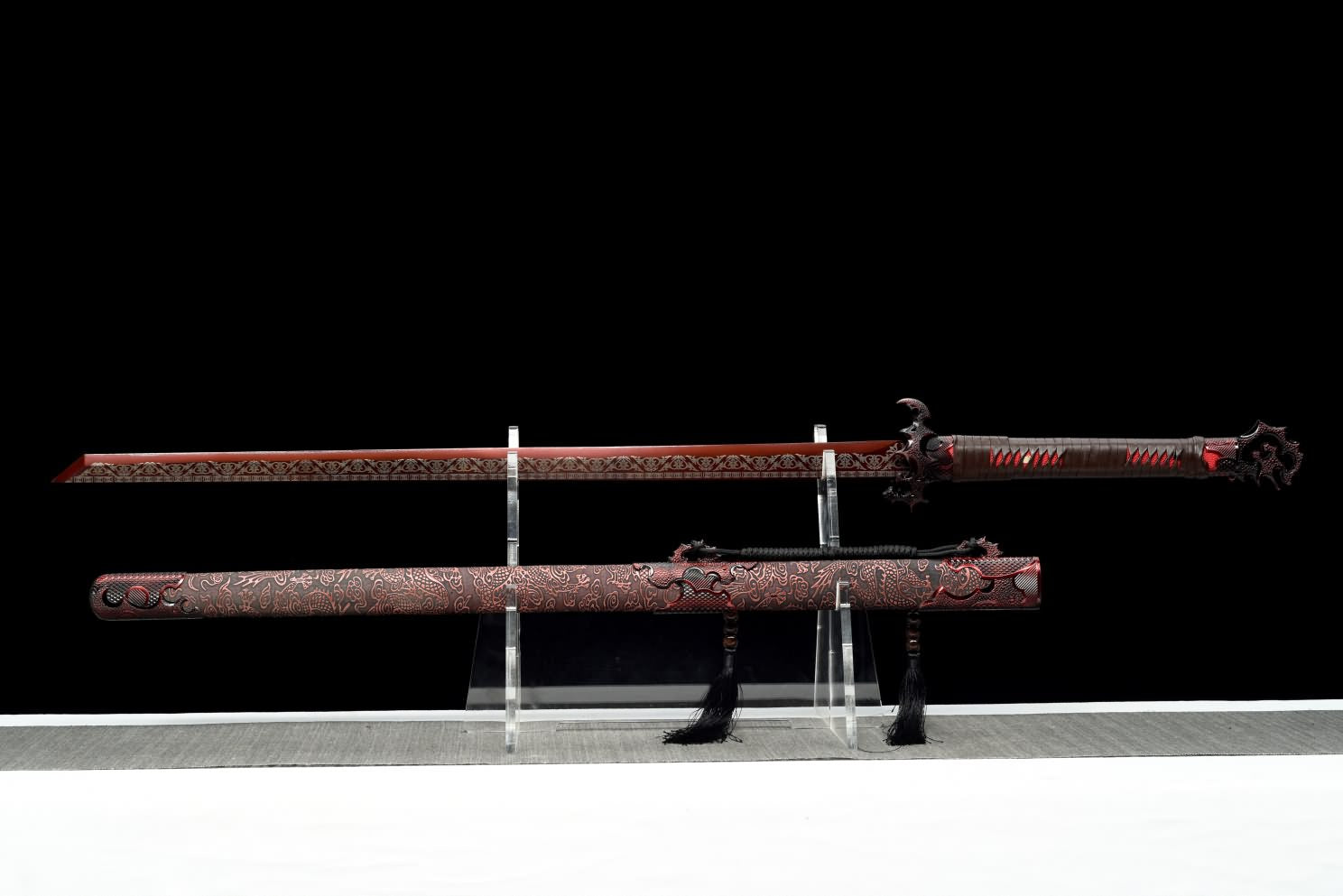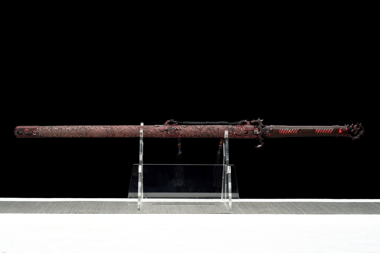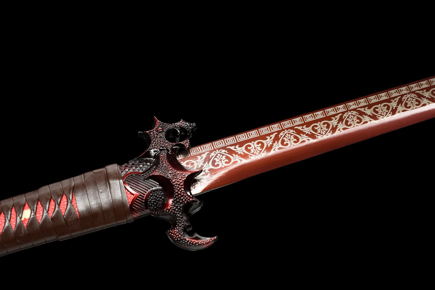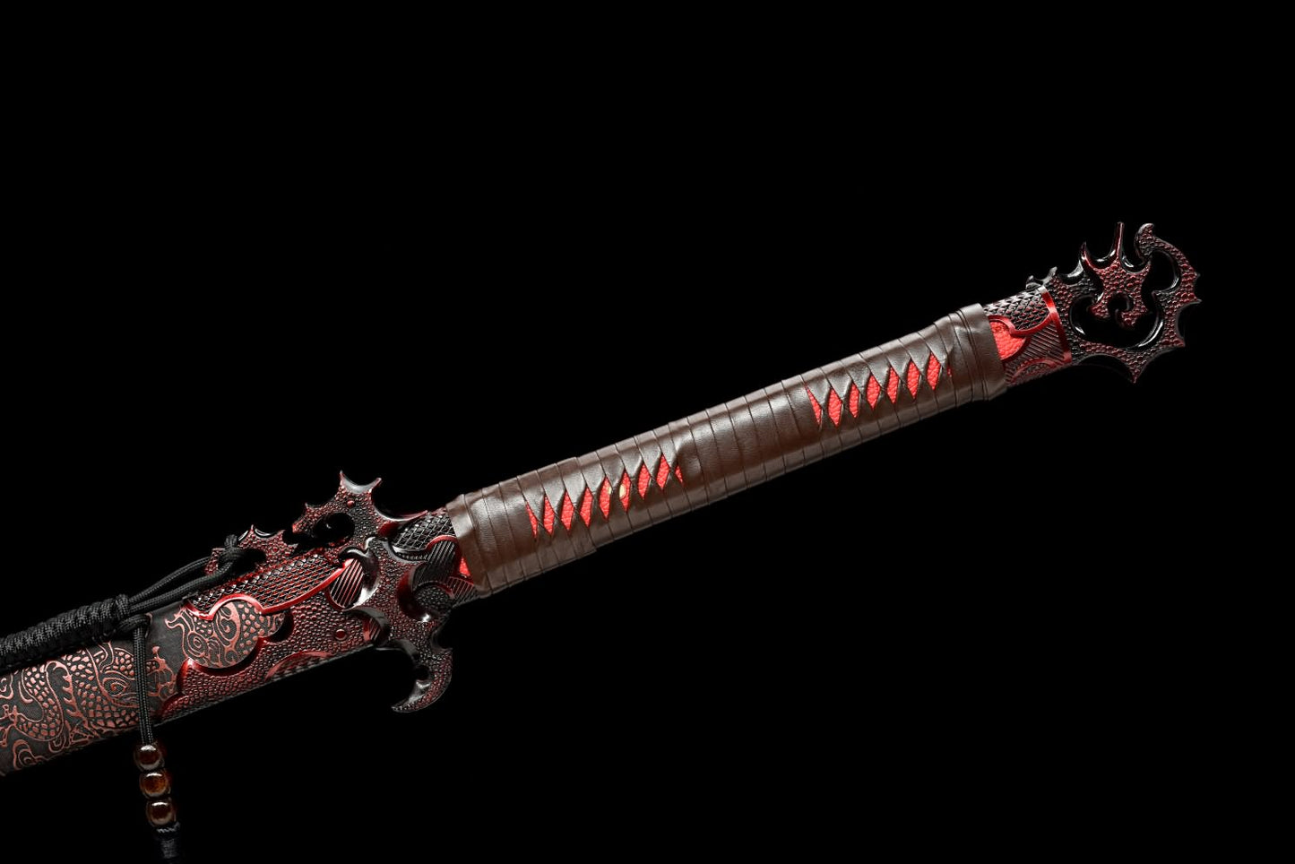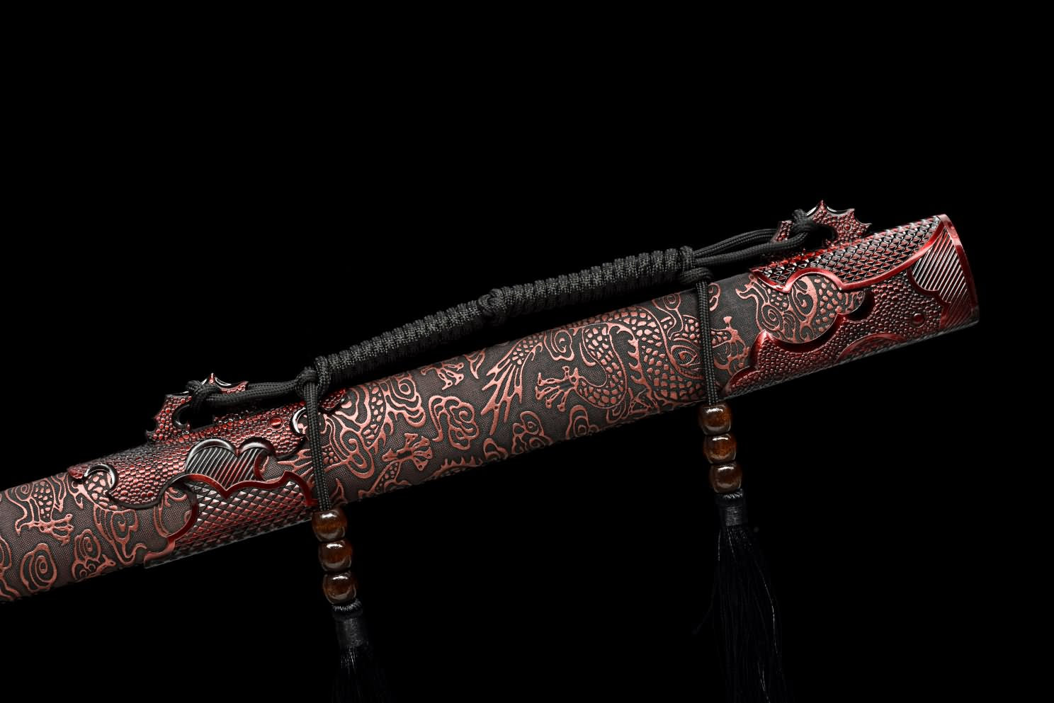 Red Dragon Tang dao Sword,Battle Ready Hand Forged High Carbon Steel Etched Blade