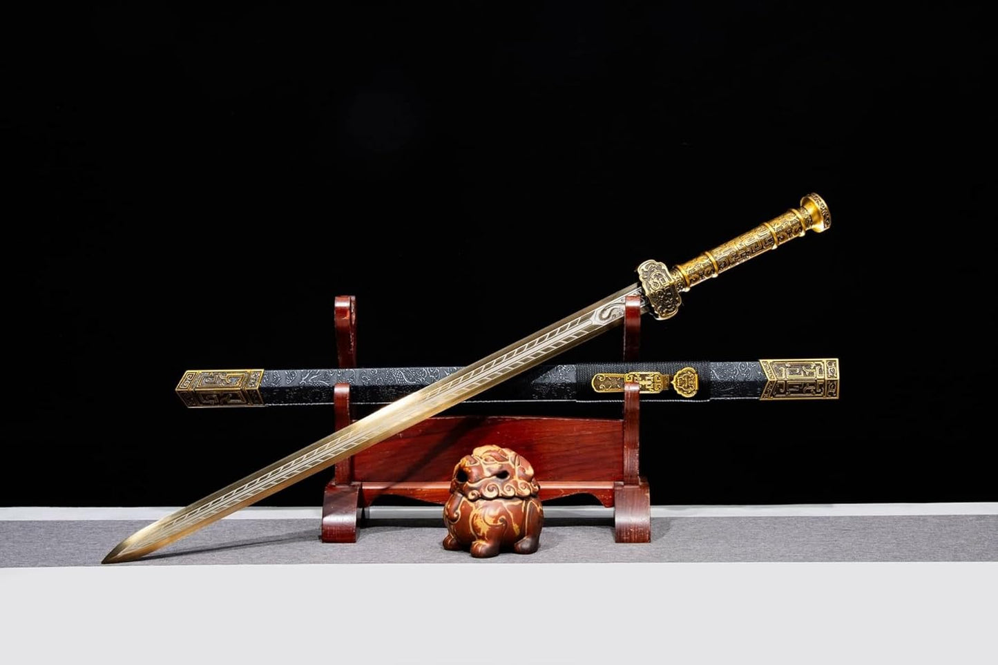 Ruyi Sword–Forged High Manganese Steel Blade,Faux-Leather Scabbard, Aluminum Alloy Fittings