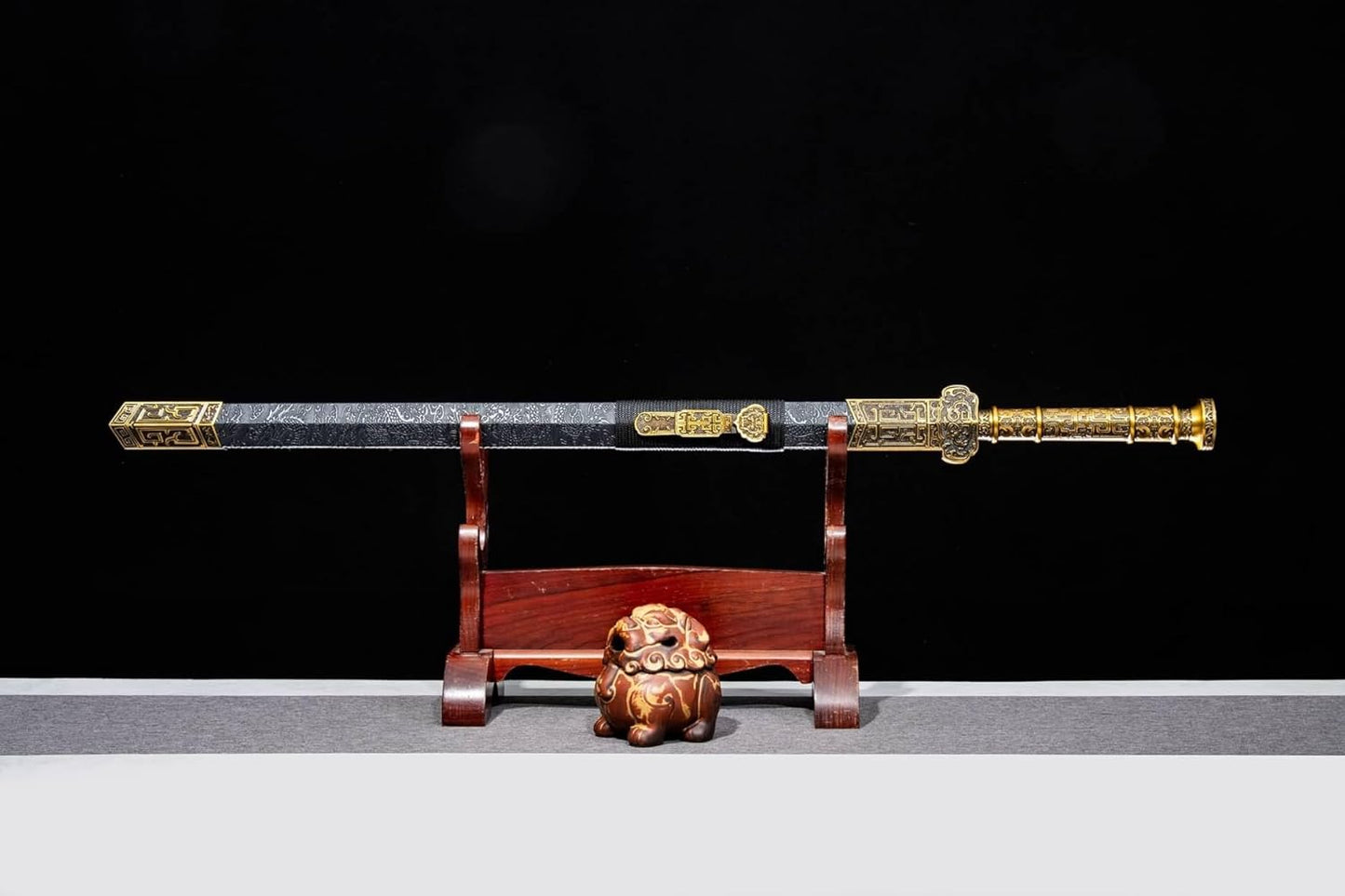 Immerse yourself in the legacy of Chinese craftsmanship with the LOONGSWORD Chinese Ruyi Sword. Forged from high manganese steel using centuries-old Longquan forging techniques, this sword is an exceptional blend of strength, balance, and beauty. The blade undergoes meticulous hand forging, quenching, and tempering processes, resulting in a sharp and resilient edge ideal for martial arts practice or display.