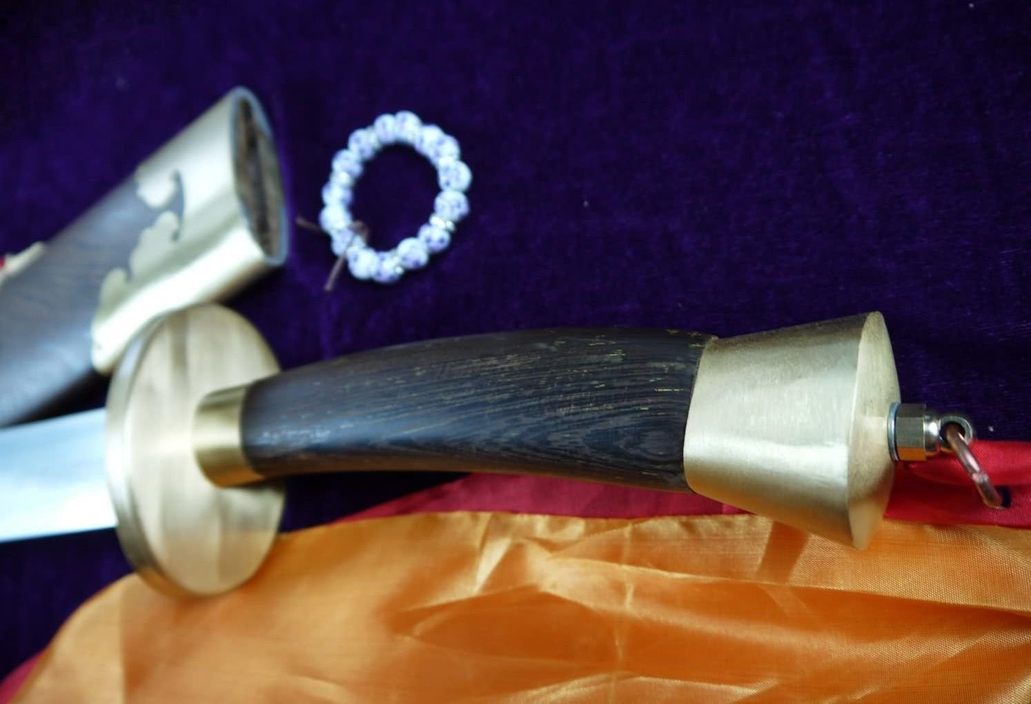 Sword generally consists of three components:blade,sheath and accessories.The main body, blade,is mostly iron,steel,copper.Sheath is made by wood. In order to avoid getting rusted,it should not be stored in damp place nor contact with sour, salty substances. Hand touch should also be avoided in case the surface got corroded by sweat.Oil shoul be applied on surface for maintainance for medium carbon steel,high carbon steel,pattern-welded steel(Damascus steel)material stainless steel blade.