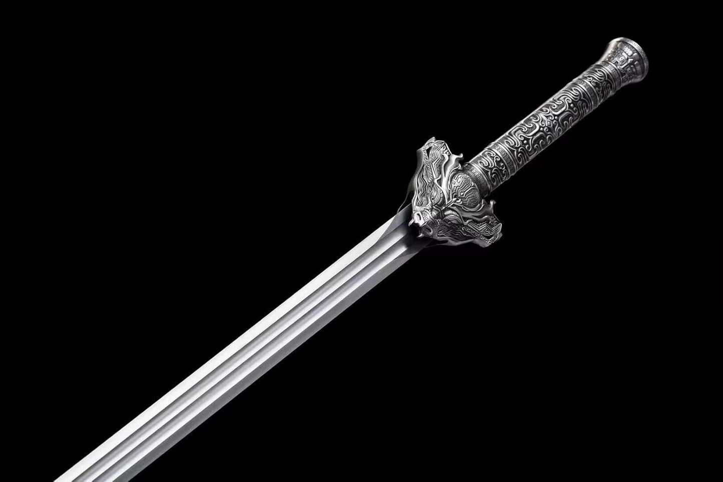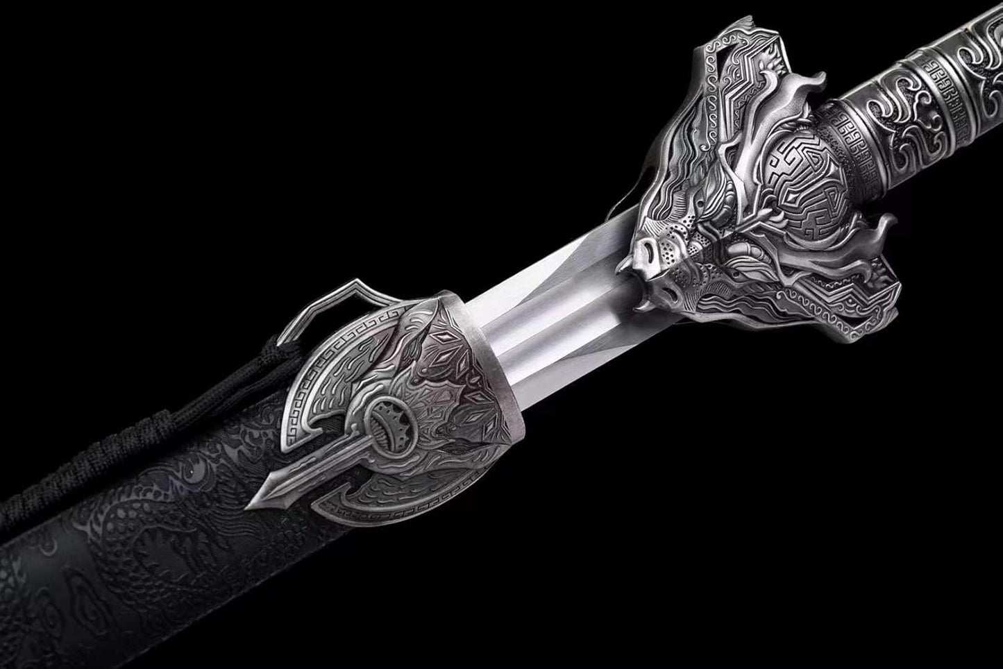 Dragon Battle Sword - Forged High Carbon Steel Blade, Dual Grooves, Alloy Dragon Fittings