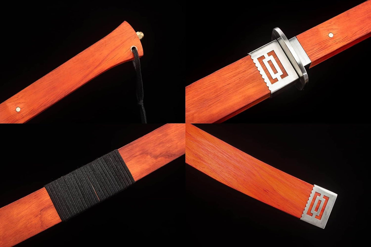 The 27.8-inch (70.5CM) blade is expertly forged from high manganese steel, undergoing hand forging, quenching, and tempering processes to achieve exceptional sharpness and strength. The polished blade is balanced for functional use, making it perfect for martial arts practice or display. The redwood handle and matching scabbard add a rich, natural elegance to the sword, while the square-shaped alloy fittings offer durability and cultural flair.