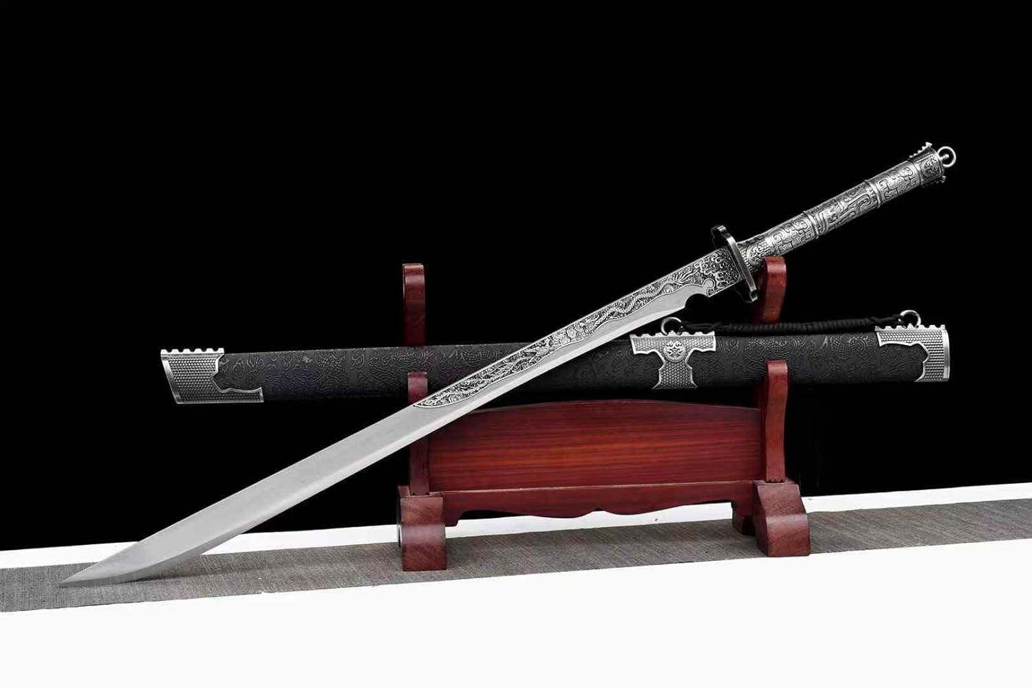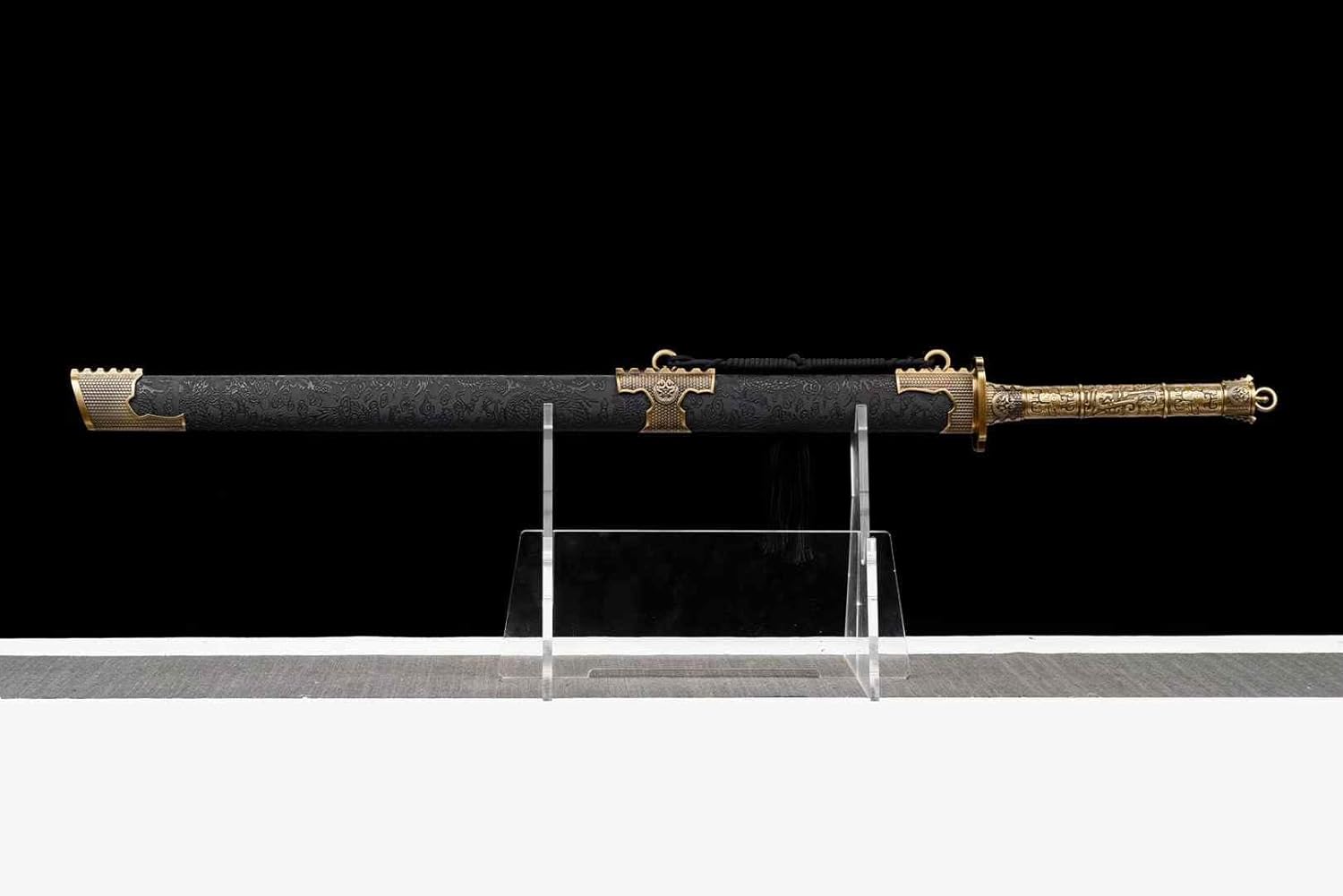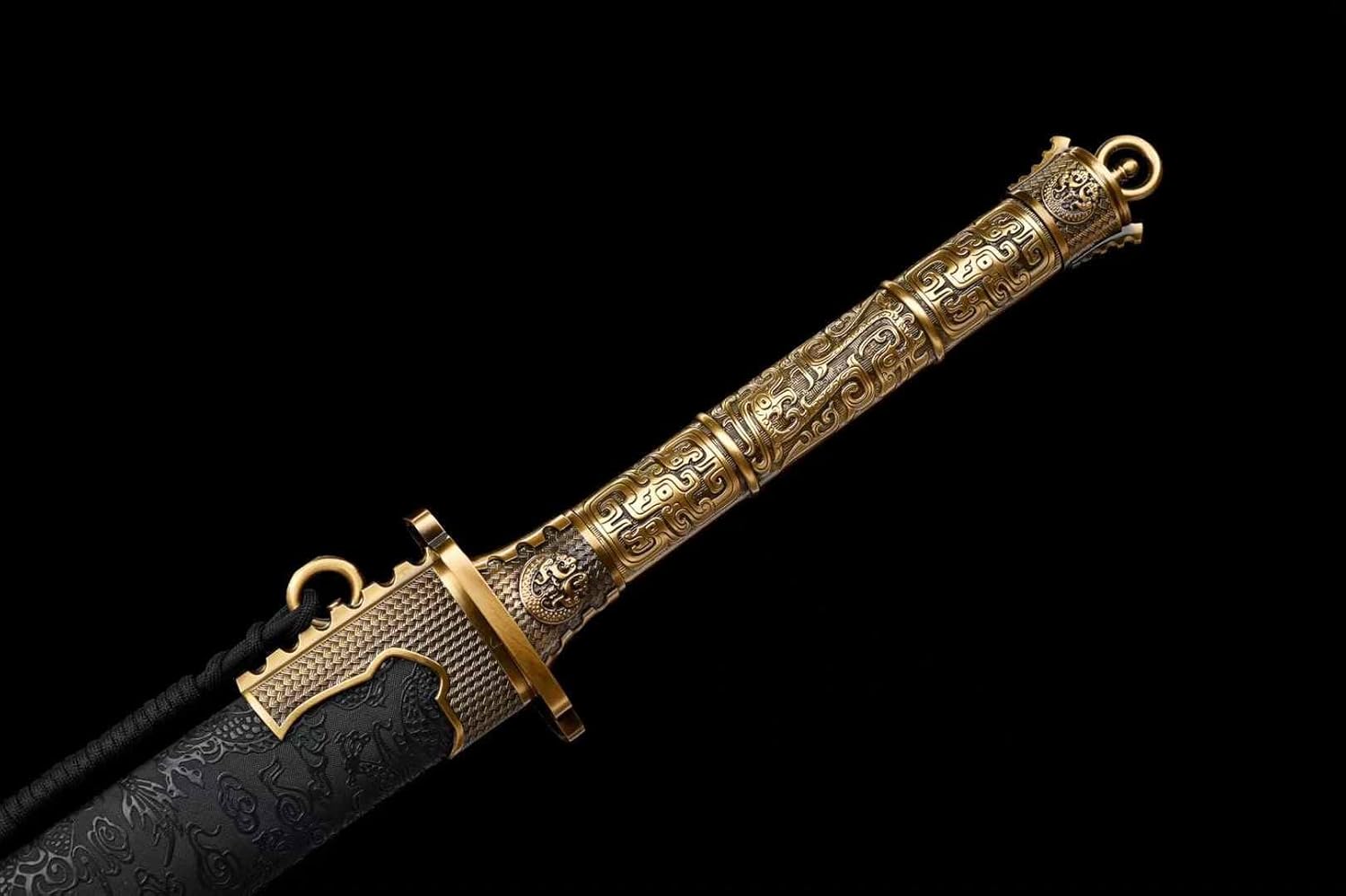 Scabbard:Solid hardwood core wrapped in black PU leather, fitted with alloy mounts echoing ancient motifs.
