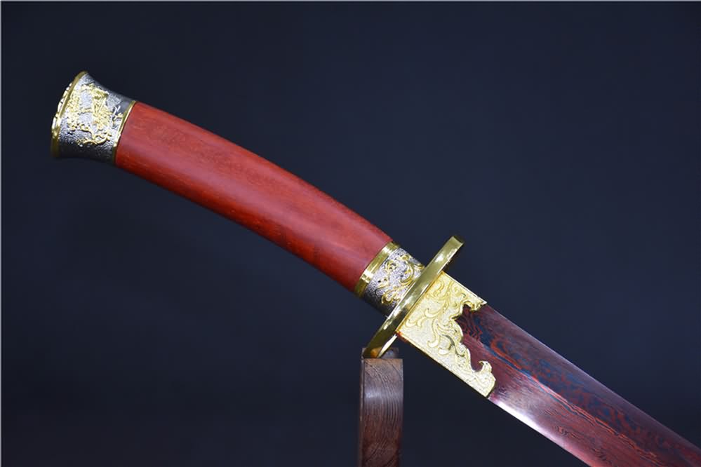 Qing dao sword,Damascus steel red blade,Redwood scabbard