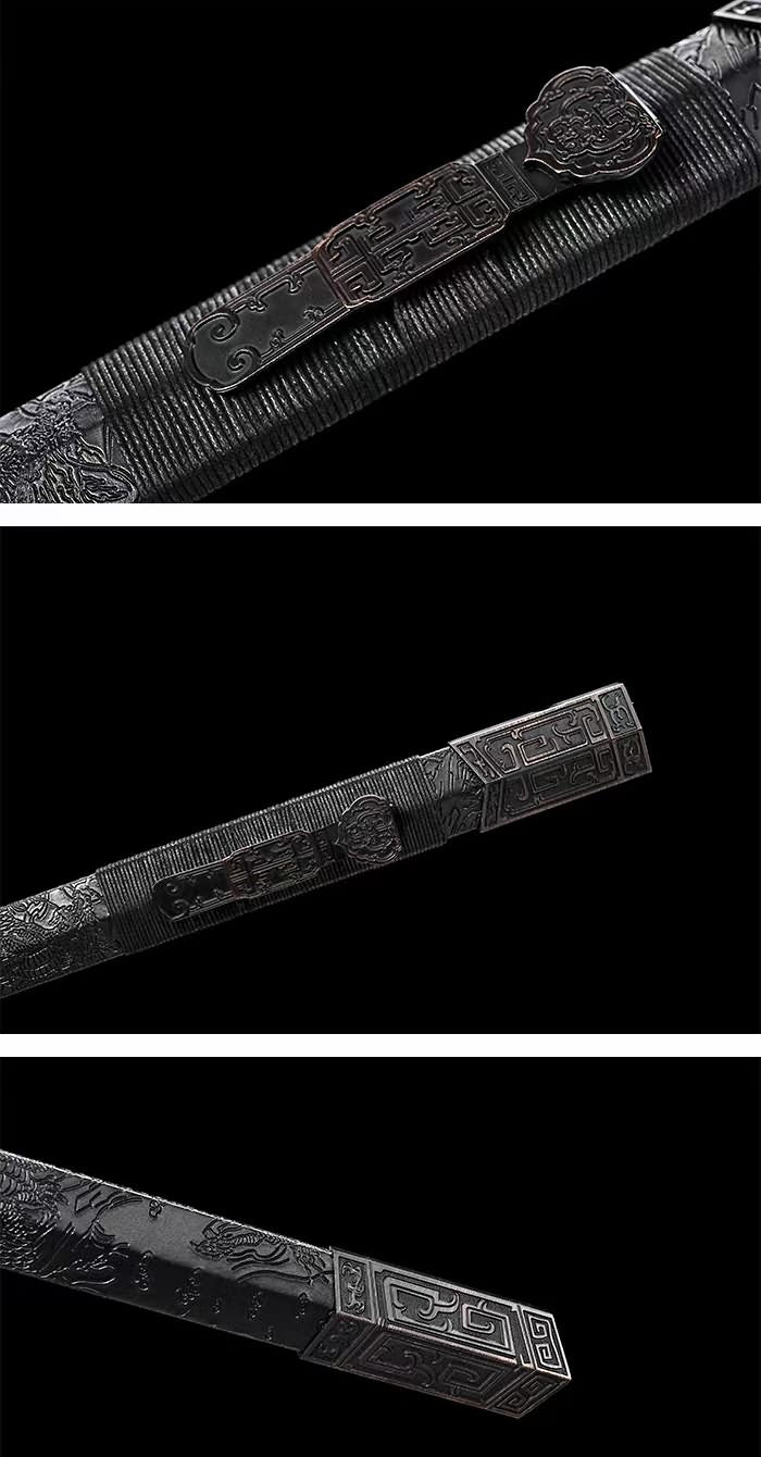 Ruyi jian Swords Real Forged Spring Steel Etched Blade,Alloy Fittings,Solid Wood Scabbard
